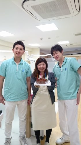 先日助手の野原さんがお誕生日だったので、お祝いをしました。