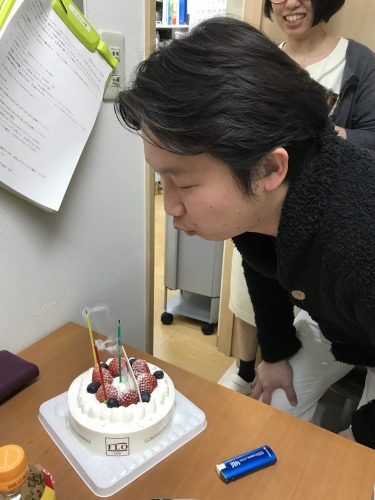 先日、理事長の鄭先生の誕生日だったので、お昼休みに誕生日のお祝いをしました!!