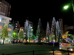 三鷹駅前は冬仕様に夜はライトアップされ始めました🎄あと1ヶ月で年末ですね。
