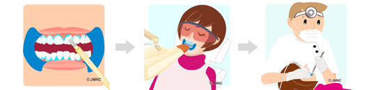 2.歯を白くする薬剤を塗り、特殊な光を照射し、薬剤を除去します。